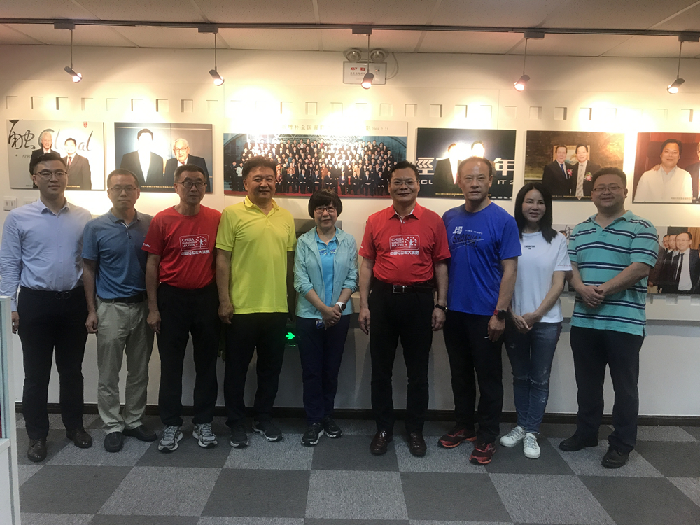 2019年7月17日下午,人民网副总裁唐维红、中国马拉松大满贯执行主席、环奥体育集团董事长金飞鸿、新丝路时尚集团创始人、名誉董事长、中国马拉松大满贯形象大使李小白、中国马拉松大满贯重庆公益跑团执行团长陈群昌、人民网体育总经理游海滨、人民网媒体资源部副主任董坤等一行到互通国际传播集团参观指导。